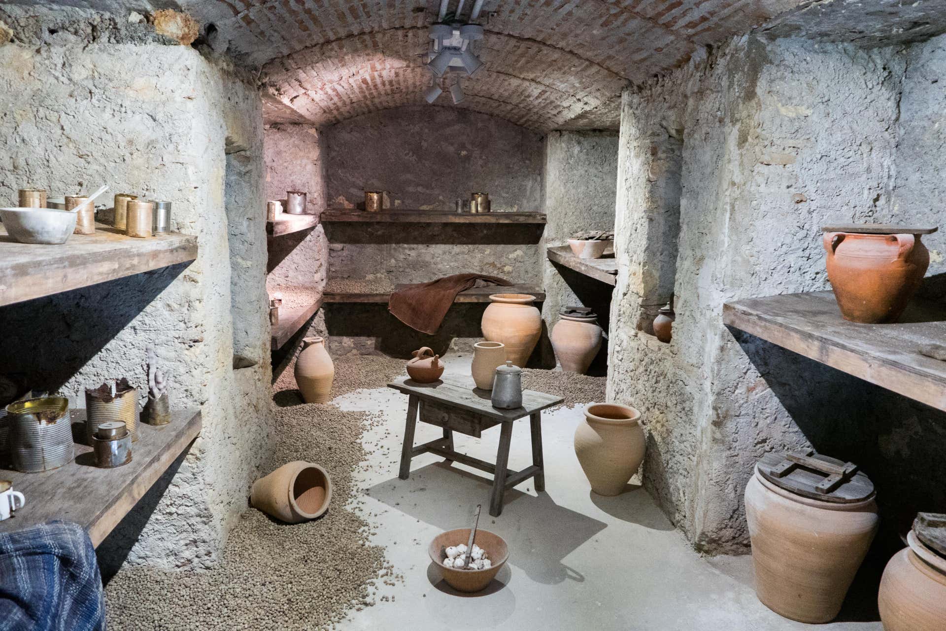 Si eres un auténtico explorador, podrás descender hasta 9 metros bajo tierra, y si eres más aventurero, ¡incluso podrás bajar hasta los 16 metros! Las profundidades albergan una antigua alacena que se comunicaba directamente con el mercado para recoger comida en caso de que hubiera un ataque, aunque esto nunca llegó a suceder.