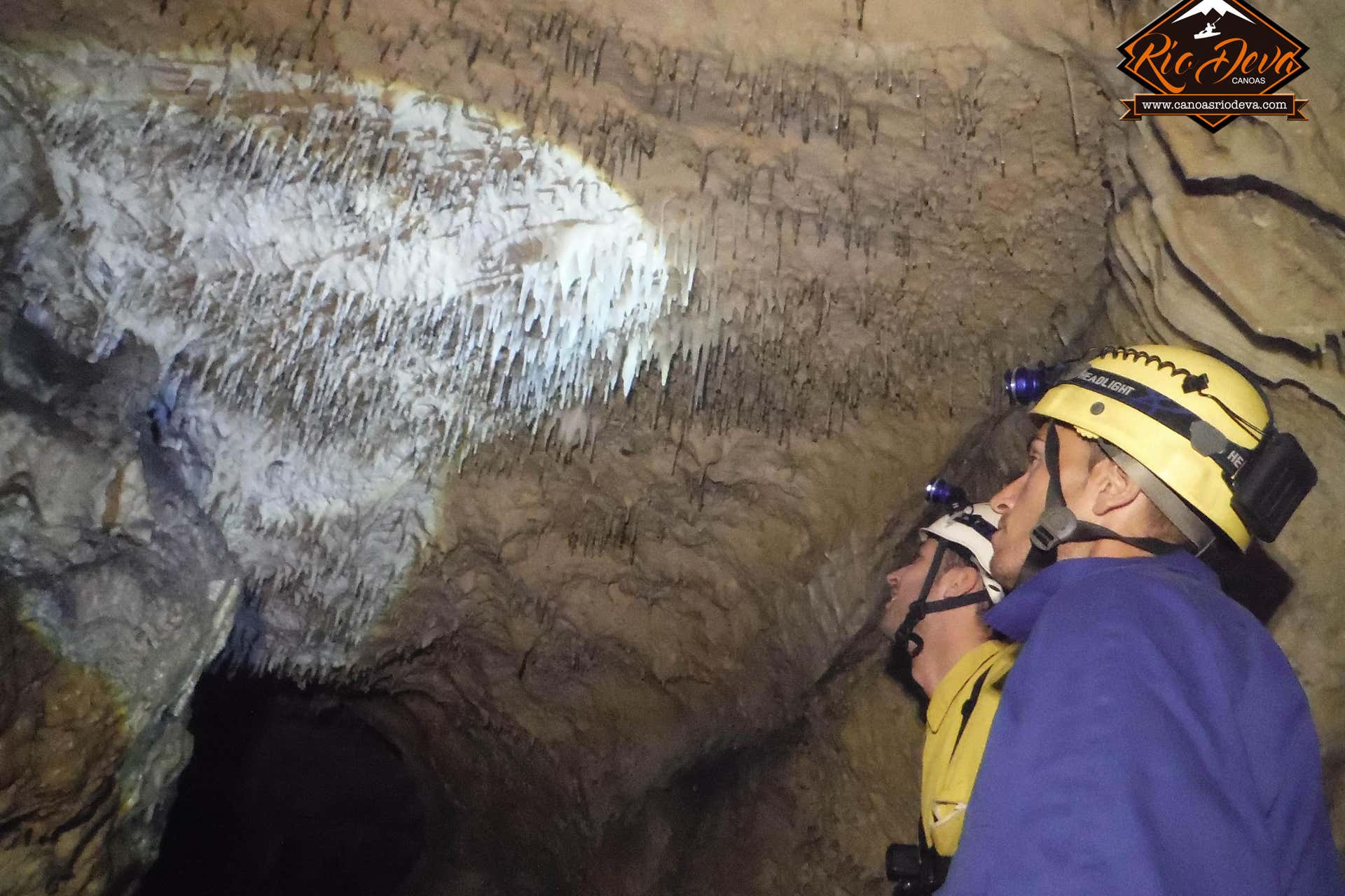 Desde allí, el minibús o autobús te llevará a Pechón, donde encontrarás la entrada a la cueva. Antes de cruzar el umbral, el guía te dará unas breves indicaciones de seguridad para que puedas disfrutar de esta experiencia fuera de toda preocupación. Una vez dentro, comenzarás la aventura. Descenderás hasta los 12 metros por la gruta, recorriendo sus múltiples galerías donde podrás apreciar las impresionantes estalactitas y estalagmitas que se encuentran en su interior. La luz de los frontales creará un ambiente de misterio que te llevará a soñar con mundos desconocidos.